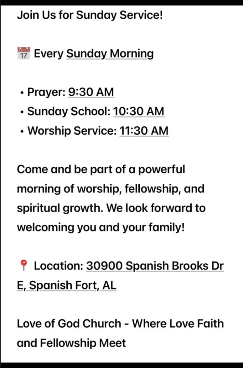 What’s Happening at Love of God PHC! Below you'll find our recurring events: ~ Below you'll find our recurring events: ~ Below you'll find our recurring events: ~ Feb 20 Prophetess Angela Butler Revival at New Hope Thursday, February 20, 2025 7:00 PM 9:30 PM New Hope Pentecostal Holiness (map) Google Calendar ICS View Event → Feb 19 Apostle Bruce Butler Speaking at Ark of Safety 16th Year Church Anniversary Wednesday, February 19, 2025 7:00 PM 9:30 PM Ark of Saftey Church (map) Google Calendar ICS View Event →